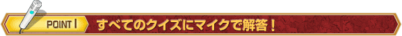 クイズの答えはすべてあなたの声で。問題にマイクを使って答えれば、その場で正解を判定。 みんなで遊ぶと、ついついマイクを持つ手に力がはいる! 気分はもうクイズ番組の出演者。 |