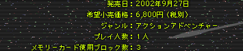 発売日:2002年9月27日 希望小売価格:6,800円(税別) ジャンル:アクションアドベンチャー プレイ人数:1人 メモリーカード使用ブロック数:3 スターフォックスアドベンチャー