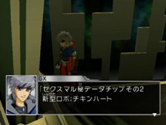 激闘編「ゼクスボスルーム」で部屋の左の柱の周りをAボタンで調べると、「チキンハート」というロボパーツが手に入る。