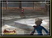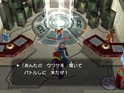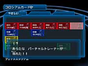 | まずは、バーチャルトレーナーとバトルできる「カードeルーム」に行きます。「カードeルーム」は、フェナスシティのスタジアム内、左の部屋の中にあります。この部屋には、シナリオモードのエンディングを迎えていないと入れません。 |