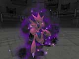 バーチャルトレーナーカードをカードeリーダー+で読み込むと、「ポケモンコロシアム」のゲーム画面にそのトレーナーの情報を表すパネルが登場して、バトルが始まります。勝ってポケクーポンや経験値をゲットしましょう! 画面は、「赤」パックのトレーナー「DRAW」のカードe+を読み込んだ場面です。 |