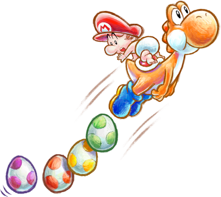 空の上にある赤ちゃんの国から、お父さんお母さんのもとにとどけられる途中、カメックにおそわれてしまったベビィマリオとベビィルイージ。途中でふりおとされたベビィマリオは、ヨッシーたちが暮らすフシギな島“たまごじま”にたどりつきます。ヨッシーたちはベビィマリオを背中にのせて、ベビィルイージを救う冒険の旅へと出発します。