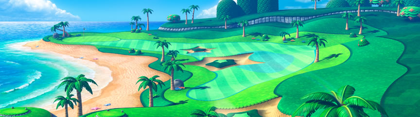 いろいろ変わった仕掛けがあるコース。ボールがとても弾む場所や、水たまりで打ちにくいバンカーも出現するぞ。
