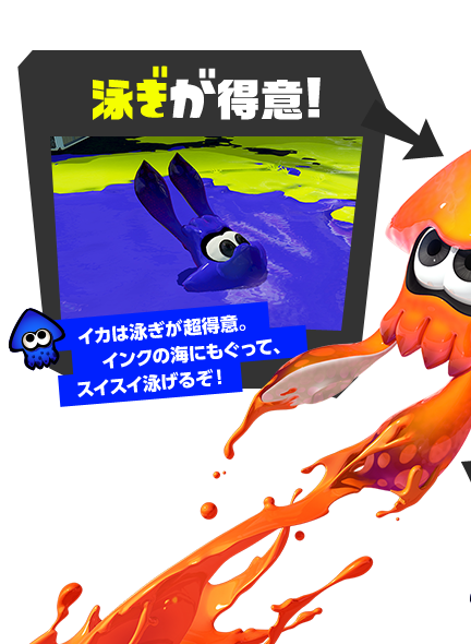 • 泳ぎが得意!イカは泳ぎが超得意。インクの海にもぐって、スイスイ泳げるぞ!