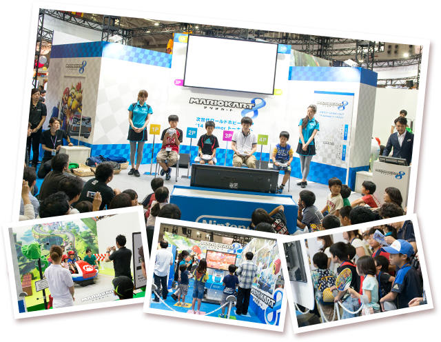会場では、『マリオカート8』で、最速プレイヤーを決定する大会が開催されていました。たくさんの人が参加する白熱したレースになったぞ!