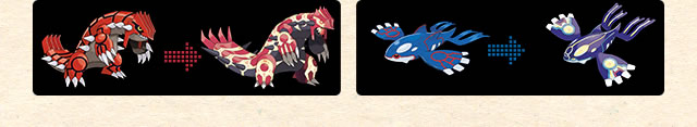 グラードンとカイオーガがゲンシカイキとよばれる現象によって、強大な力をとりもどした真の姿に!
