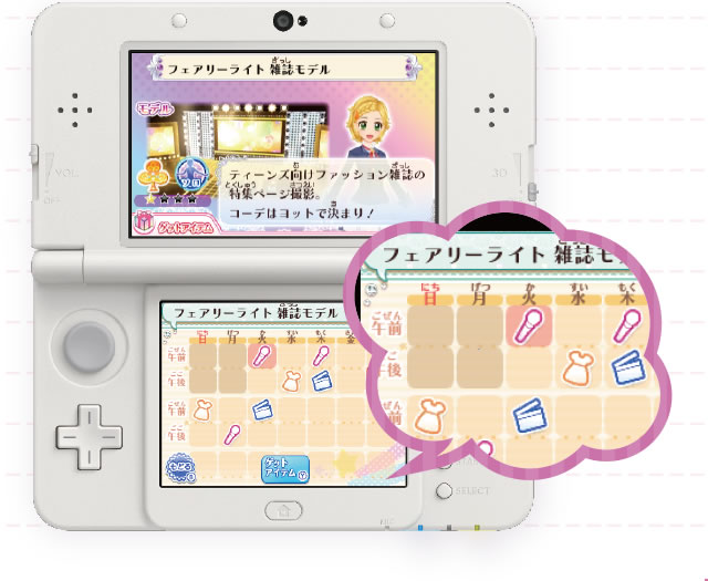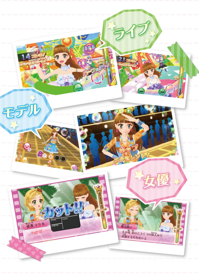 大人気!アイカツ!が超パワーアップして登場! 今度のアイカツ!は150種類以上のお仕事をこなして、トップアイドルを目指す、リアルアイドルアドベンチャー! オリジナルのストーリーを楽しみながら、お仕事を自分でスケジューリングして、キラキラなアイドル活動をはじめよう!