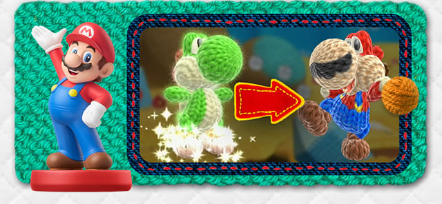 ヨッシー以外のamiiboをかざすと……それぞれのキャラクターの柄になってプレイできる!