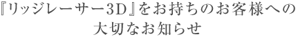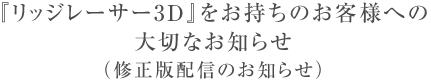 『リッジレーサー3D』をお楽しみの皆様にはご不便をおかけいたしまして誠に申し訳ございません。