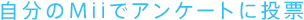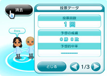 各プレイヤー(Mii)のこれまでの投票回数、予想の成績、予想的中率などの記録を表示します。 予想結果の成績に応じて変化する「世の中わかってる度」、多数派・少数派のどちらに投票したかによって、世の中と自分との間にどれだけギャップがあるかがわかる「世の中とのギャップ」といったユニークな結果も見られます。 |