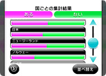 アンケートには国内限定と世界共通の2種類があり、日本各地、世界各国の人々の考えかたの違いを知ることができます。 |