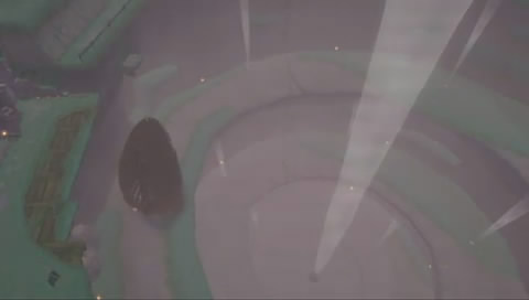 すり鉢のようになっている地形の大きな壁をらせん状にすることで、