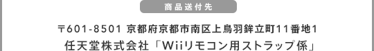 お客様がお持ちのWiiリモコン用ストラップが対象品だった場合は、無償で交換させていただきますので、下記、任天堂株式会社「Wiiリモコン用ストラップ係」宛に郵便で(110円分の切手を貼付した封筒にストラップを入れて)お送りください。交換対象品の到着を確認後、郵便にて交換品と、対象ストラップをお送りいただいた際の送料(110円切手)を発送させていただきます。