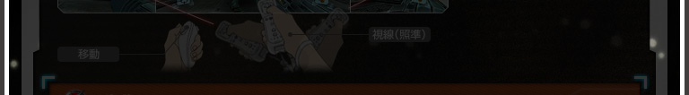 敵をロックオンしてビームやミサイルを撃つと、弾は敵に向かって飛んでいきます。(ロックオン中でも自由に照準を動かせるように、設定を変更することも可能です。)