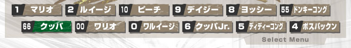 マリオ ルイージ ピーチ デイジー ヨッシー ドンキーコング ワリオ ワルイージ クッパJr. ディディーコング ボスパックン