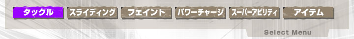 タックル:Wiiリモコンを振ると、相手に向かってタックル!どんなにラフなタックルでもペナルティなし。喰らった相手はしばらく行動不能に!タックル