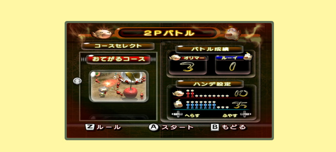最初に何匹のピクミンを連れているかを、ハンデとして設定することも可能です。バトルがはじめての方も、バトルになれた方も、全力を出し切って一緒に対戦することができます。