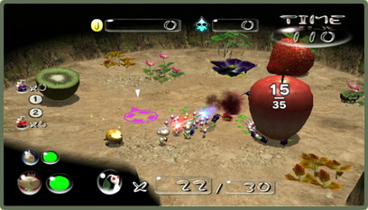 原生生物と戦いながら、お宝を回収。コース内ではピクミンを増やせないので、戦いは慎重に。