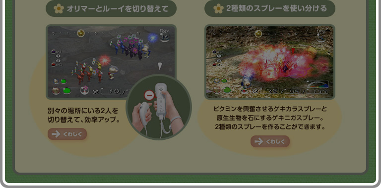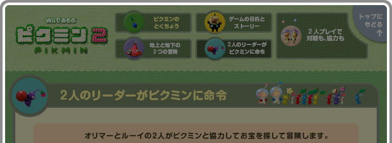 地上と地下の2つの冒険|2人のリーダーがピクミンに命令|2人プレイで対戦も、協力も