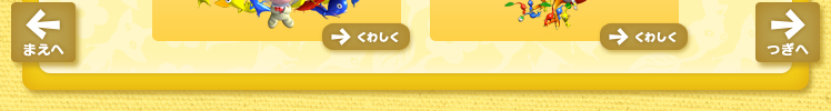 ← まえへ つぎへ → → くわしく ふえる → くわしく たたかう → くわしく はこぶ → くわしく ついてくる ふえる たたかう Wiiであそぶセレクション Wiiのトップページへ