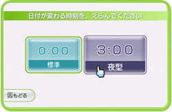 日付が次の日に変わる時刻を、0:00(標準)または3:00(夜型)のいずれかに設定することができます。