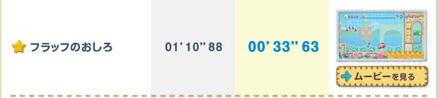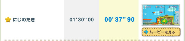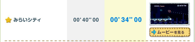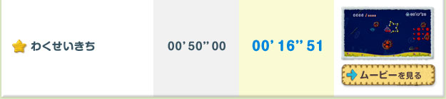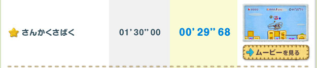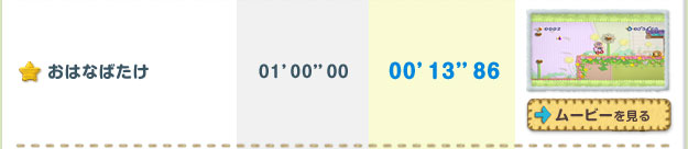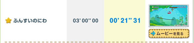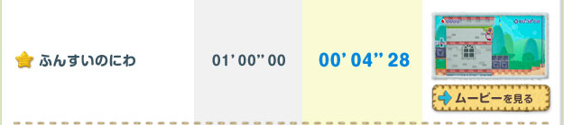 クリアするごとに遊べるステージが増えていく「ミッション」。全ステージのほんの一部ですが、開発スタッフによる参考記録をご紹介します。プレイムービーを参考に、高記録に挑戦してみてくださいね!