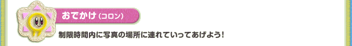 おでかけ(コロン):制限時間内に写真の場所に連れていってあげよう!