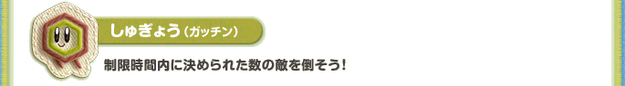 しゅぎょう(ガッチン):制限時間内に決められた数の敵を倒そう!