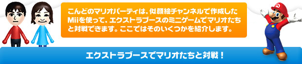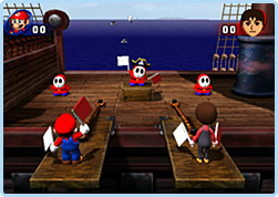 1〜2人用: ヌンチャクを接続したWiiリモコンを使い、右手にWiiリモコン、左手にヌンチャクを持って遊びます。 ヘイホーが上げたはたと同じ色のはたを、間違えないように上げていきます。 続けていくとヘイホーがフェイントをかけてくるので、引っかからないように注意。