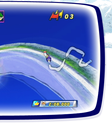 さまざまな仕掛けのあるコースで、アイテムやテクニックを使ってゴールを目指せ! プレイスタイル:Wiiリモコン単体、Wiiリモコン+ヌンチャク、バランスWiiボード