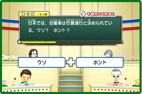 「ホント」「ウソ」の2択で答える「ホントウソクイズ」や教科書クイズ、歴史クイズなど教養を問う問題が多いことが特徴です。