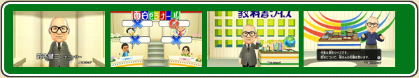 2択問題の「ホントウソクイズ」、小学校の教科書から出題する「教科書クイズ」、歴史をテーマにした「歴史クイズ」などで構成される教養クイズ番組です。(放送期間 1981年〜1988年) 本ソフトでも、司会の鈴木健二さんの名調子を聞くことができます。
