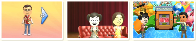 プレイヤーキャラクターにはMiiを使います。家族のMiiを登録すれば、みんなで懐かしのNHKクイズ番組に参加している気分を味わうことが出来ます。(Miiは最大15人まで登録できます。)