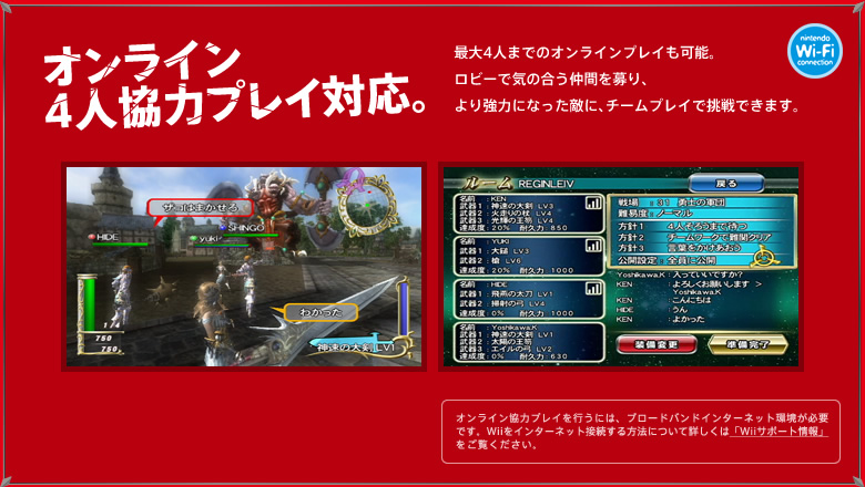 • オンライン4人強力プレイ対応。 最大4人までのオンラインプレイも可能。ロビーで気の合う仲間を募り、より強力となった敵に、チームプレイで挑戦できます。