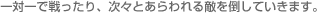 一対一で戦ったり、次々とあらわれる敵を倒していきます。
