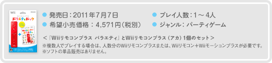 Wiiリモコンプラスバラエティパックとは? Wiiリモコンプラスとソフトのセットです。 詳しくはこちら
