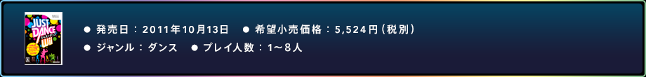 ● 発売日 2011年10月13日 ● 希望小売価格 5,524円(税別)● ジャンル ダンス ● プレイ人数 1〜8人