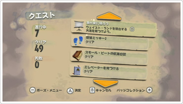 街の住人などからヒントを得ると、物語に新たな目的「クエスト」が追加されます。遂行中のクエストはリスト化され、プレイヤーは、それを頼りに、今何をしなければならないかを考えながら冒険します。