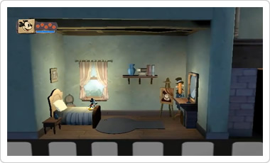 街やダンジョンといったステージ間の移動は、「プロジェクタースクリーン」に飛び込むことで行います。スクリーンの中には、往年のディズニー映画をモチーフにした横スクロールのステージが広がっています。