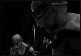 「紅贄祭」で儀式を執行する役目を負った村人。 儀式を目にしない、他言しないために、 瞼を縫い合わされ、喉を潰されている。