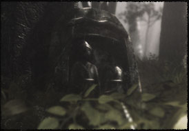 皆神村に点在する、 二体で一組となった地蔵。 片方だけ頭部が欠けている。