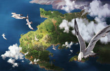 本作の舞台は「ルリ島」だ。山脈に囲まれた大陸にぽかんとあいた唯一の湾の入り口に位置する。そこは背後に控える帝国の交通と防御の要であり、それが故に富と力が集中する場所でもある。巨大砲台が鎮座し、腕のたつ騎士と命知らずの傭兵が、敵の侵略に備える。