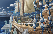 城の中庭にはうっすらと水がはられ、洞窟の中では滝となって滴り落ちる。街の中央には大きな川がある。そして主人公たちは大海原に繰り出す・・・