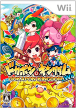 RPGとボードゲームがひとつになった! ルーレットを回してドカポン王国を冒険、マスに止まるとイベントやバトルが発生。バトルに勝ってレベルアップ、集めたお金で装備を整えてキャラクターを育てよう。村を支配するモンスターを倒して資産を増やし、一番お金を集めた人が優勝! バトルは攻撃や防御のコマンドを4つの中から選ぶだけの簡単操作。ウォリアー、マジシャン、シーフの基本職業のほか、錬金術師や忍者などさまざまな能力を持つ職業に転職が可能。 「かつらシステム」を搭載、美容師カーリーに好みのヘアースタイルにしてもらい、コンテスト優勝を目指せ! |