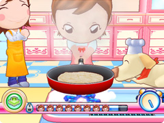 ![]() 焦がさないようにWiiリモコンを動かしてハンバーグをやいてね。ママも応援しているよ! |