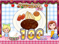 ![]() ドキドキの結果発表!上手にハンバーグはできたかな?得点が表示されるよ! |