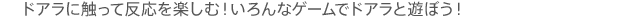 ドアラに触って反応を楽しもう!反応部位は「顔」、「耳」、「腕」、「胴」、「下半身」、「足」、「靴」の7部位! |