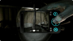 ![]() キーアイテムの携帯電話は、マップを呼び出したり、撮影したりとさまざまな場面で活用できる。 |