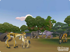 | ここはアフリカ、野生の王国。さまざまな動物や植物でいっぱいのはずです。かつては豊かだったこの土地も今は荒れ果ててしまっています。この広大な土地をととのえ、動物や植物が幸せになると「正しき力」がうまれて大地が元気になっていきます。「正しき力」は、動物にエサをあげたり、なでたりして喜ばすことでうまれる力です。そうして動物たちと仲良くなれば、動物たちが大地に元気を取り戻す手伝いをしてくれるでしょう。 |