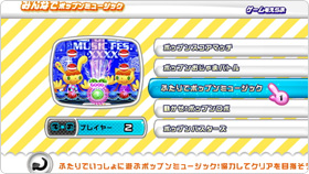 ![]() ふたりで仲良く協力プレイ♪お友だちと協力しながら好きな曲でフリフリ! |